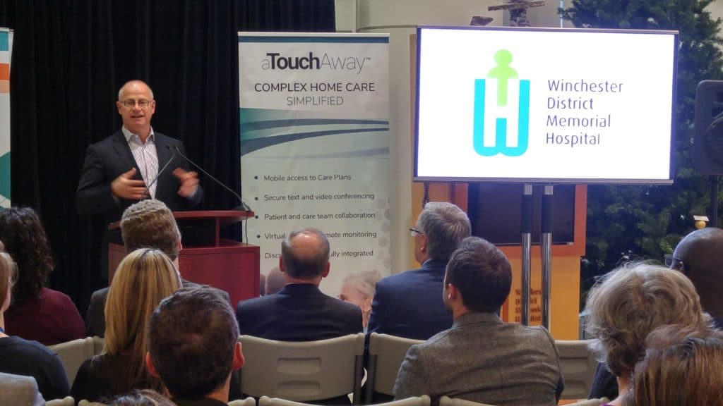 A select group of complex-care patients in eastern Ontario will be cared for using new technology right in their own homes.  On November 30, 2017, William Charnetski, the Chief Health Innovation Strategist for Ontario (OCHIS), is kicking off the deployment of aTouchAway by Aetonix Systems, in the Arnprior Region & West Ottawa (AROW) and Upper Canada (UC) Health Links.